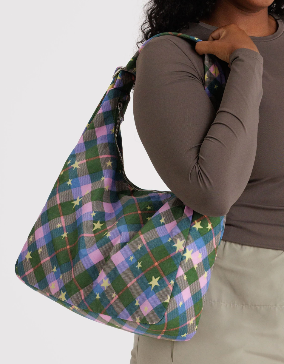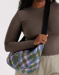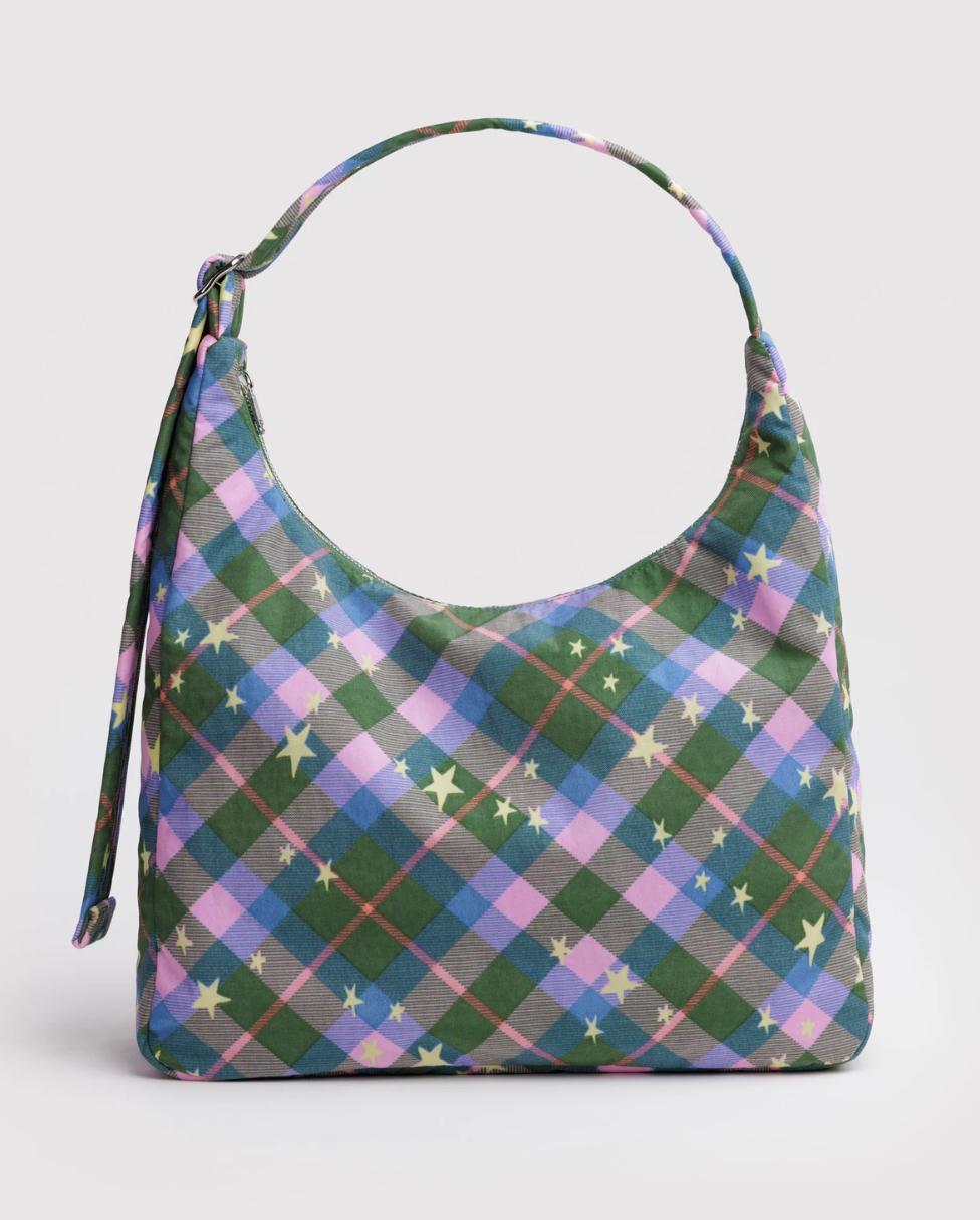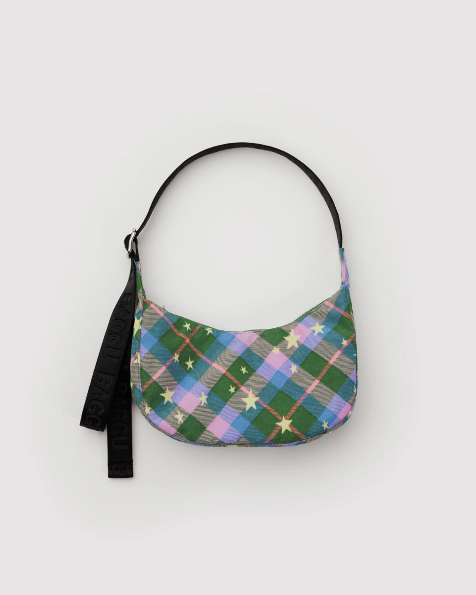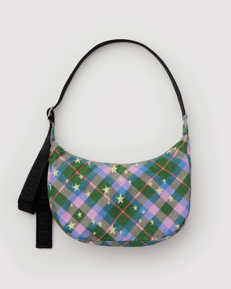 MEDIUM NYLON CRESCENT BAG | GREEN STAR PLAID