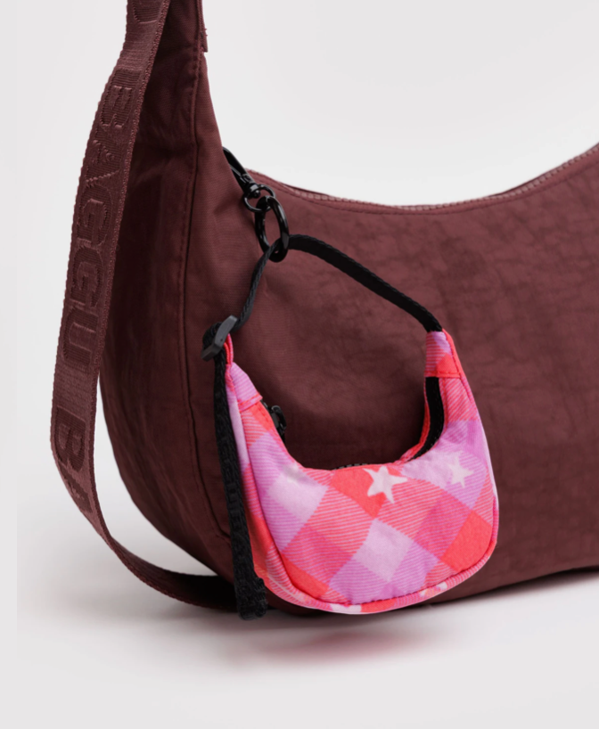 CRESCENT BAG CHARM | PINK STAR PLAID
