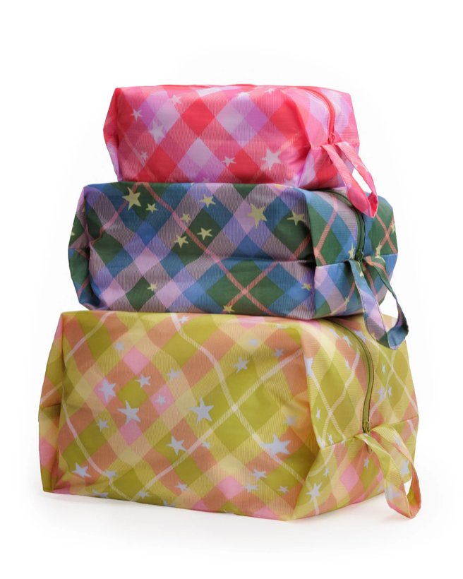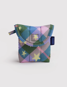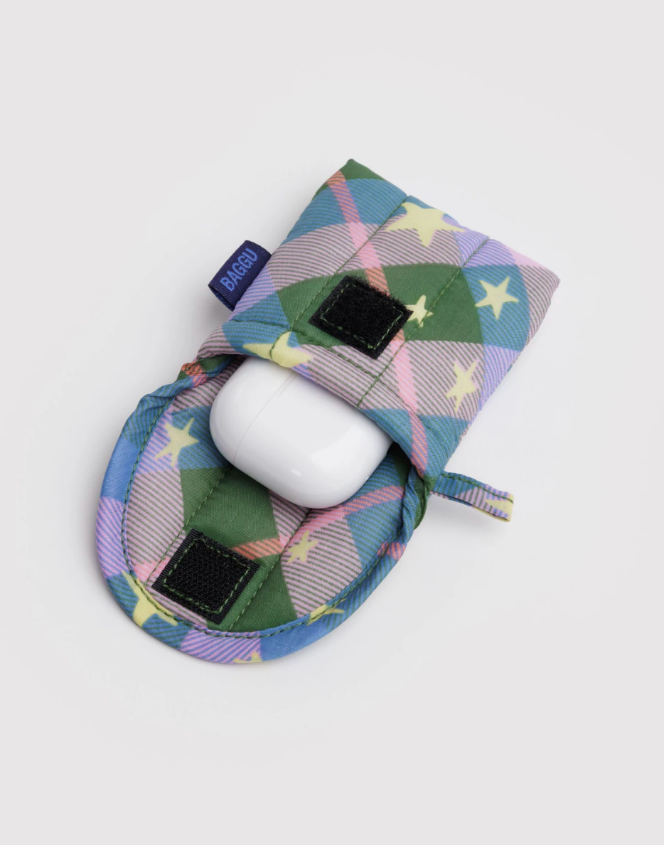 PUFFY EARBUDS CASE | GREEN STAR PLAID