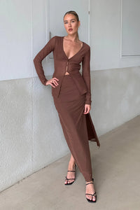 LINDSEY GATHERED MIDI SKIRT | CHOCOLATE