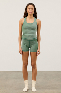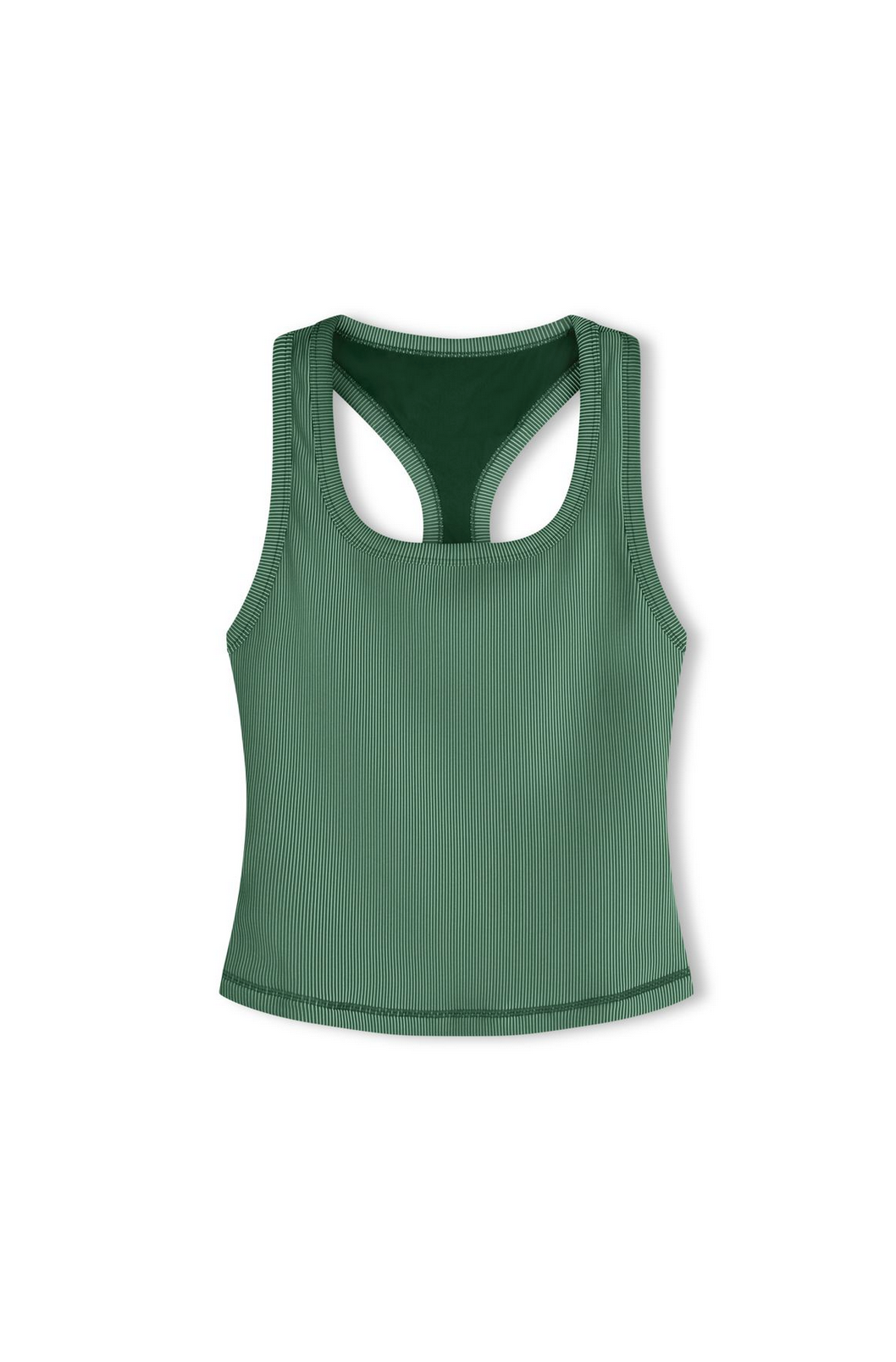 STRIPE RIB RACER BACK TANK | TALLOW GREEN