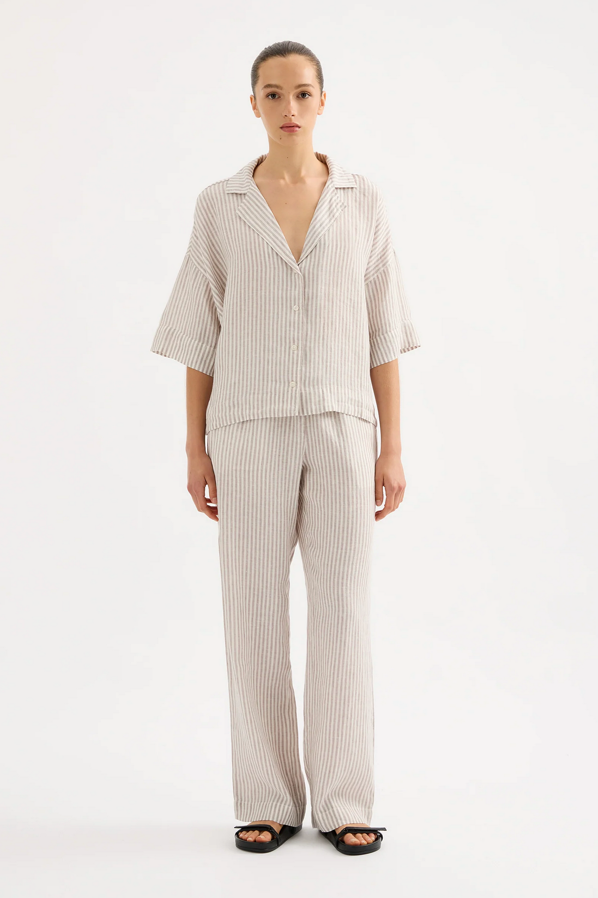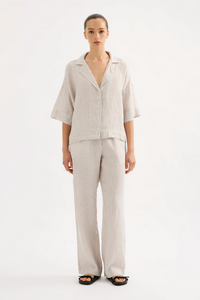 LOUNGE STRIPE LINEN PANT | SILVER STRIPE